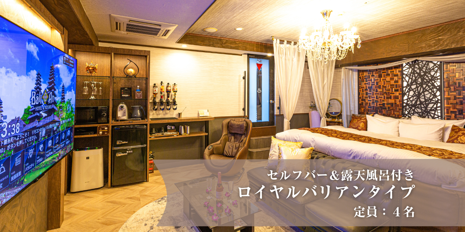 南国バリをイメージした落ち着いた客室で、